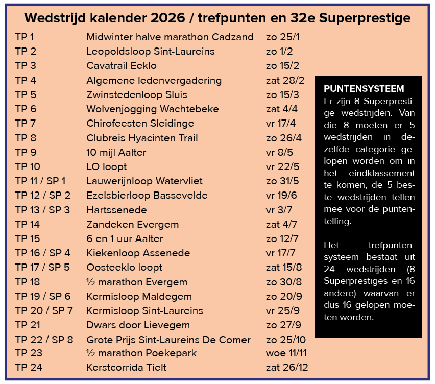 Onze club organiseert jaarlijks een eigen Superprestige loopcriterium en werkt ook met