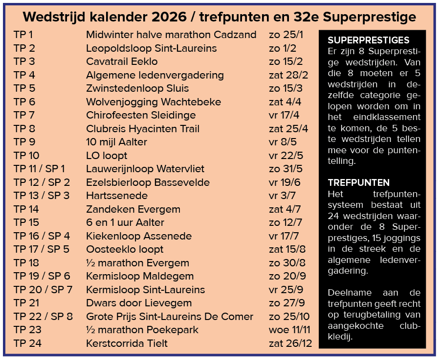 Zoals elk jaar kan er weer via de trefpunten gelopen worden voor clubkledij.