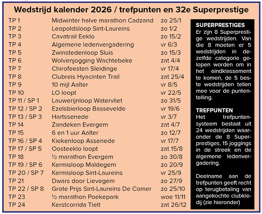 Zoals elk jaar kan er weer via de trefpunten gelopen worden voor clubkledij.